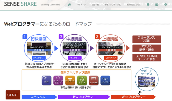 47.Webサービスを公開する方法 48.オリジナルサービス第1号の開発 49.デビュー作の完成 50.上級講座ステージ1クリア この段階で、本格的なWebサービスを1から自分で作れるようになります。